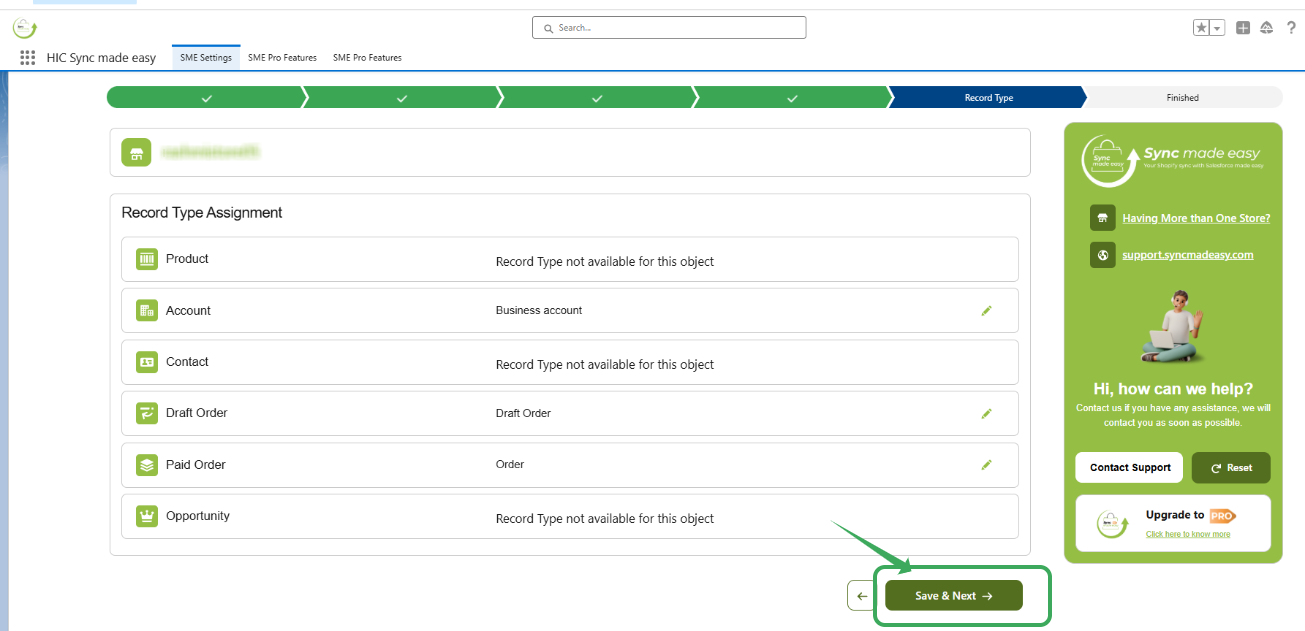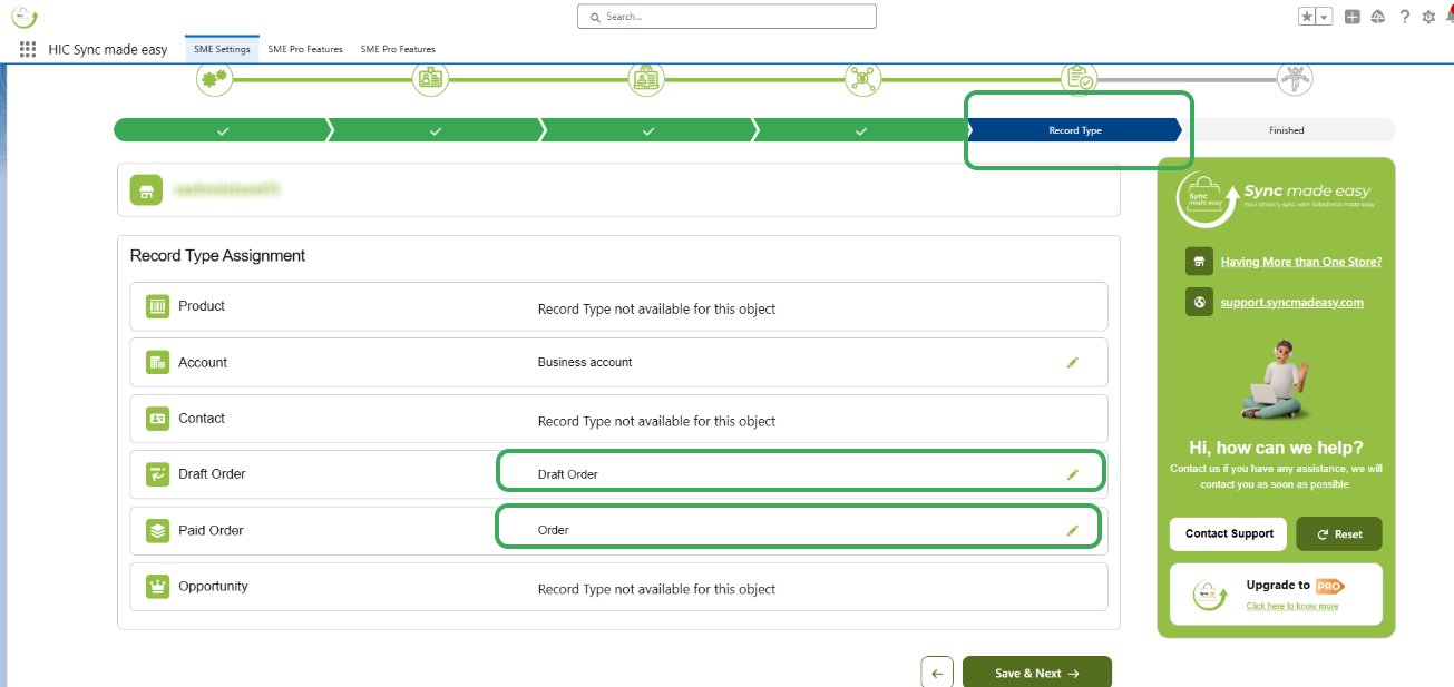 Step 2: Click Save & Next to apply the changes. This ensures Shopify Drafts and Completed Orders are categorized correctly in Salesforce.