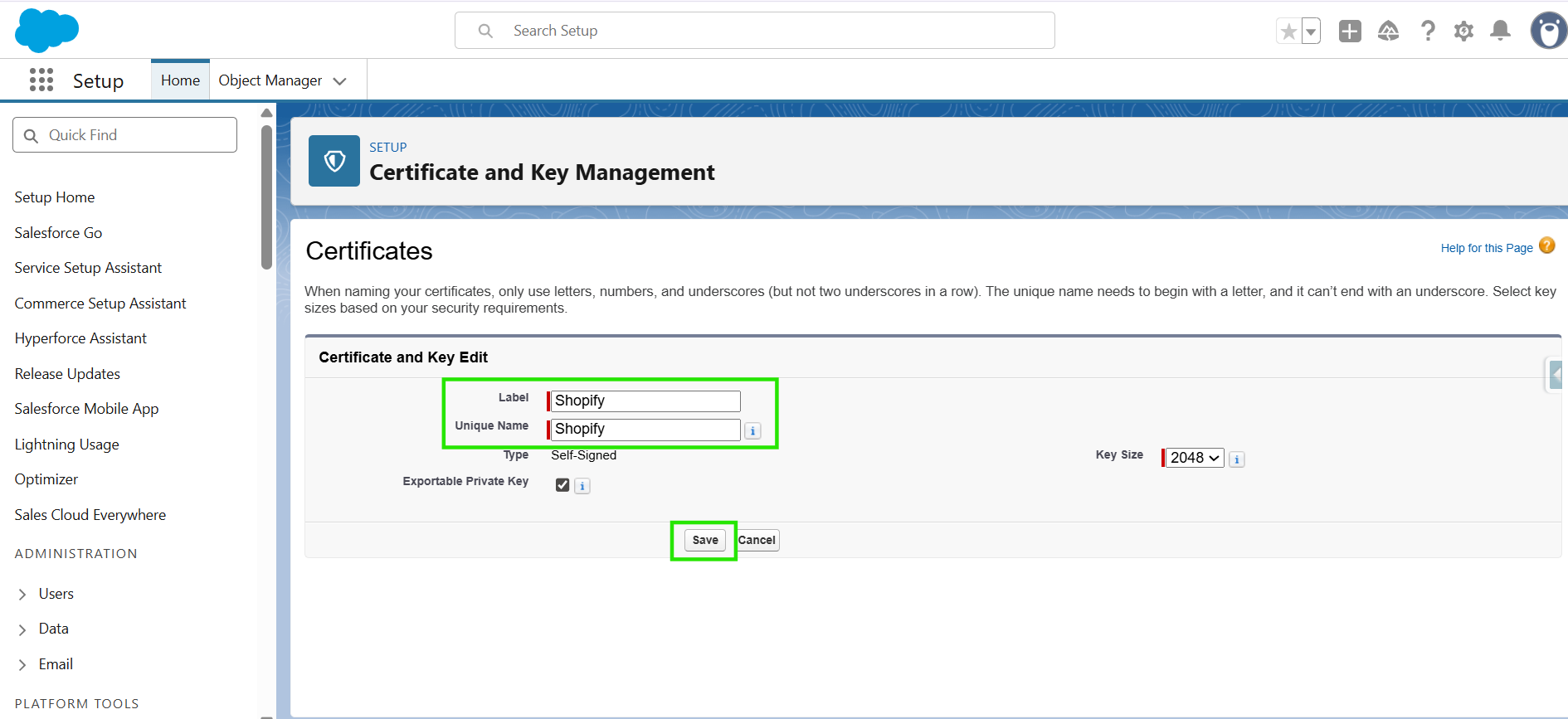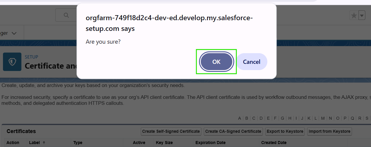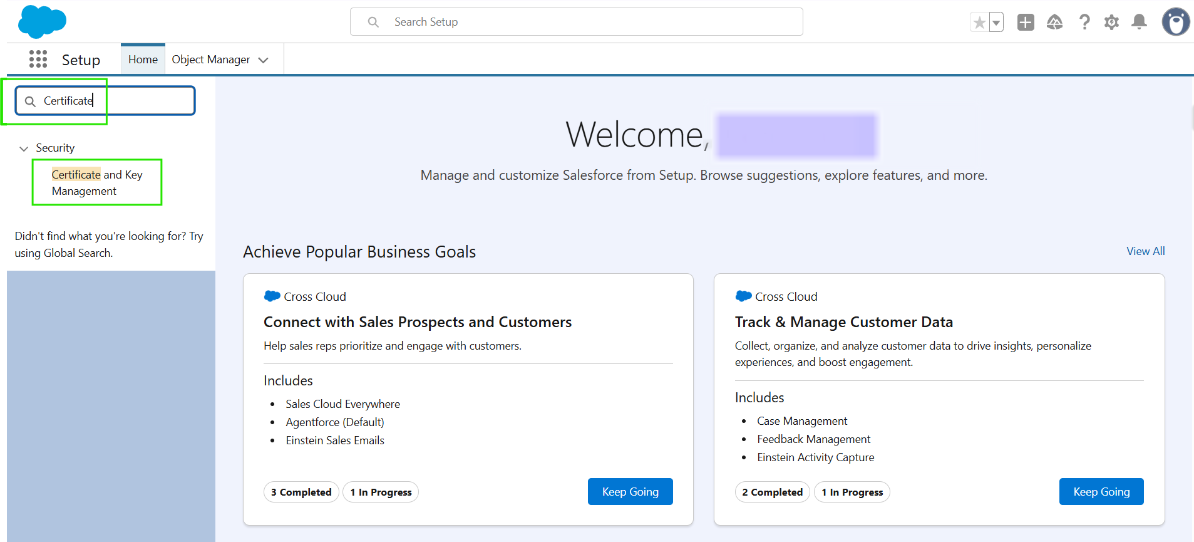 Step 2: Search for Certificate and Key Management in the Quick Find box.