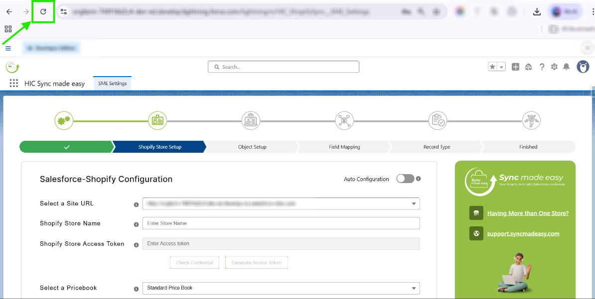 Step 8: Now go back to “SME Settings” and refresh the page. You will be redirected to the Shopify Store Setup page.