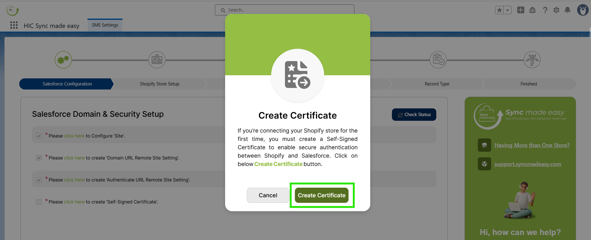 Step 5: Go back to the SME Settings Page & click on the “Create Certificate” button.