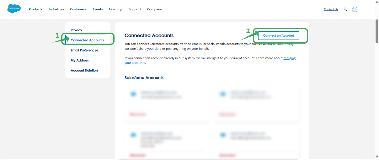 Step 3: Click on “Connected Accounts” and click “connect an account”. (if not connected, then only.)