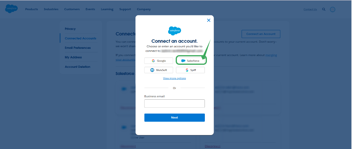 Step 8: Log in to your account by choosing “continue with salesforce” on the login page, then enter the dev org credential to which you have connected and try to install the package.