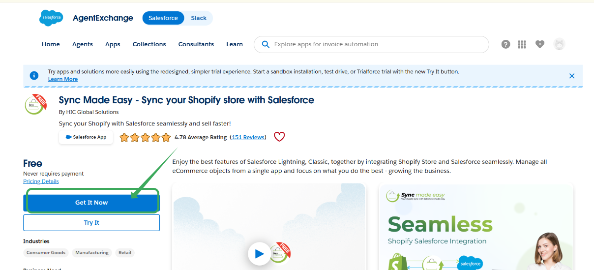 Step 6 : Now search for ‘Sync Made Easy – Sync your Shopify store with Salesforce’ in your browser, or just click the below link: Sync Made Easy – Sync your Shopify store with Salesforce.