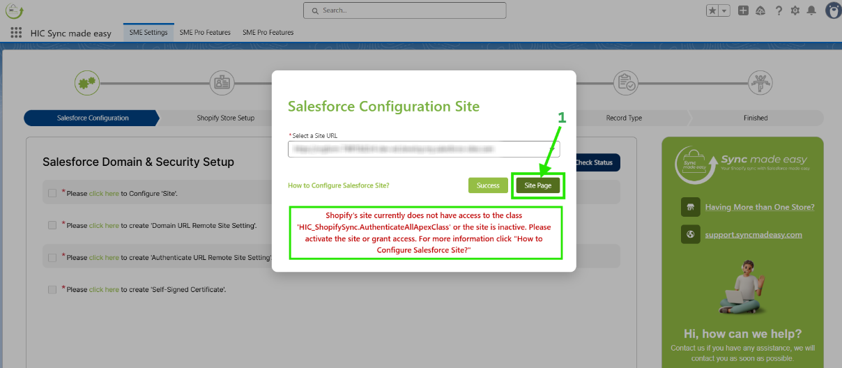 You can activate the site and add the “HIC_ShopifySync.AuthenticateAllApexClass” by following the steps below: