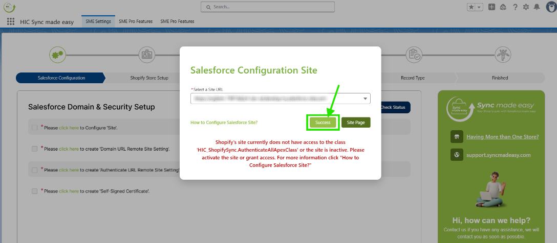 Step 8: Go back to Sync Made Easy and, in the pop-up below, click on the Success button.