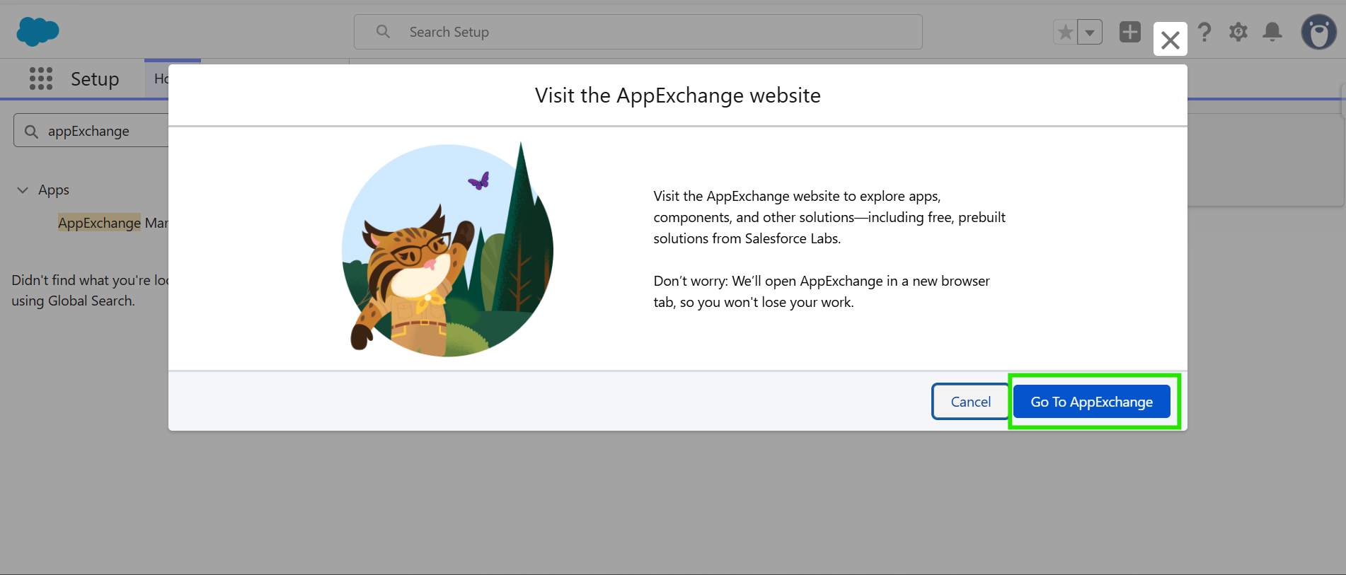 - Now, click on "Go To AppExchange" button.