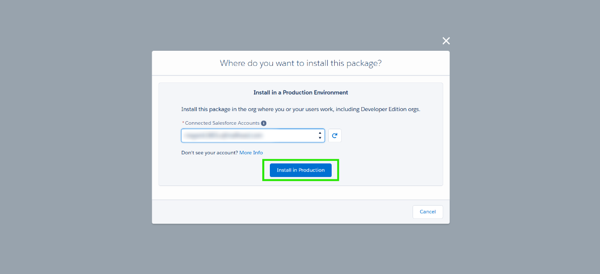 Step 4: After logging in successfully, you will be prompted to choose where to install the package. We recommend selecting Install in Production.