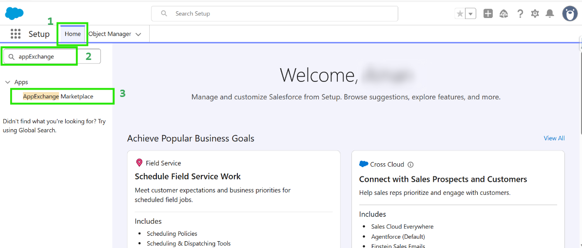 - Alternatively, you may also log in to your Salesforce org, go to Home, Search AppExchange Marketplace in the Quick Find box, and click on it.