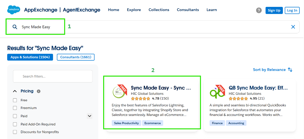 Step 1: In the AppExchange search bar, type Sync Made Easy and select the app.