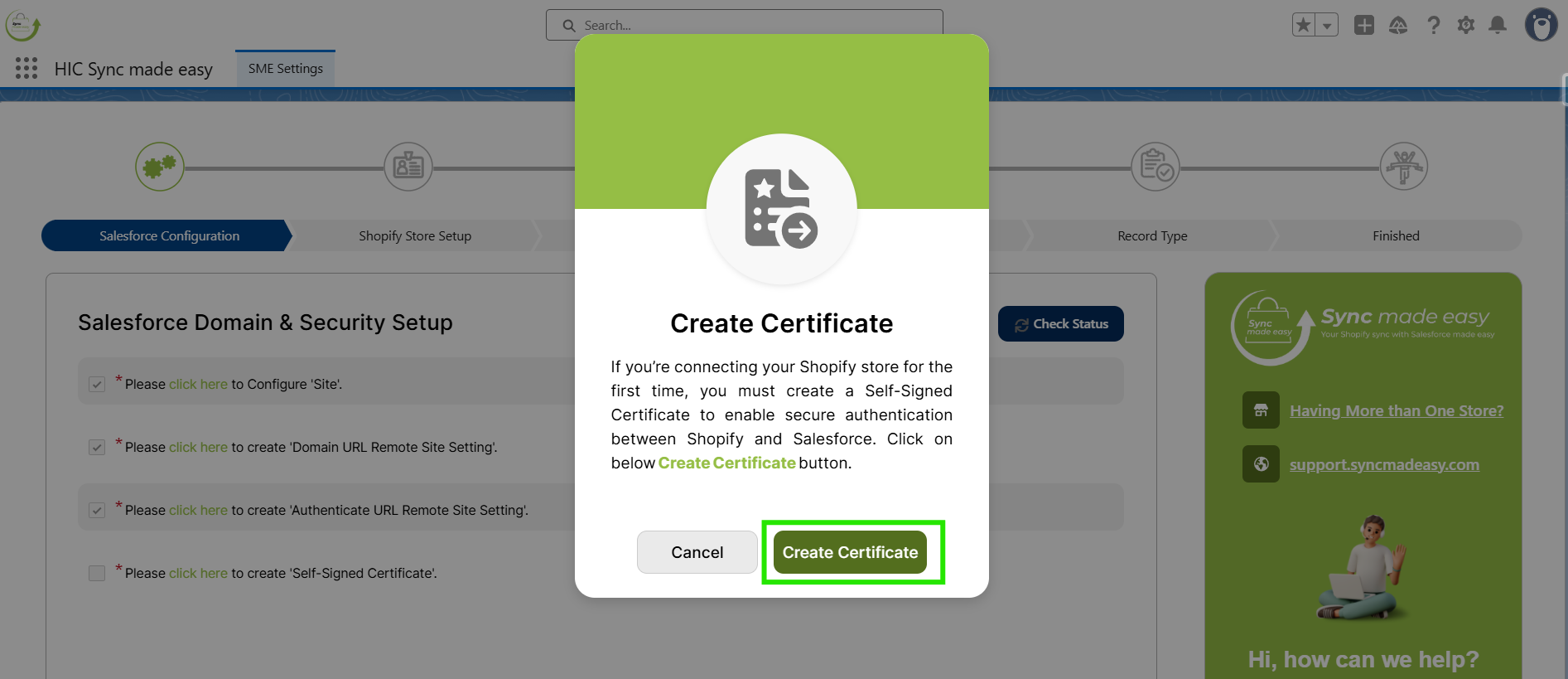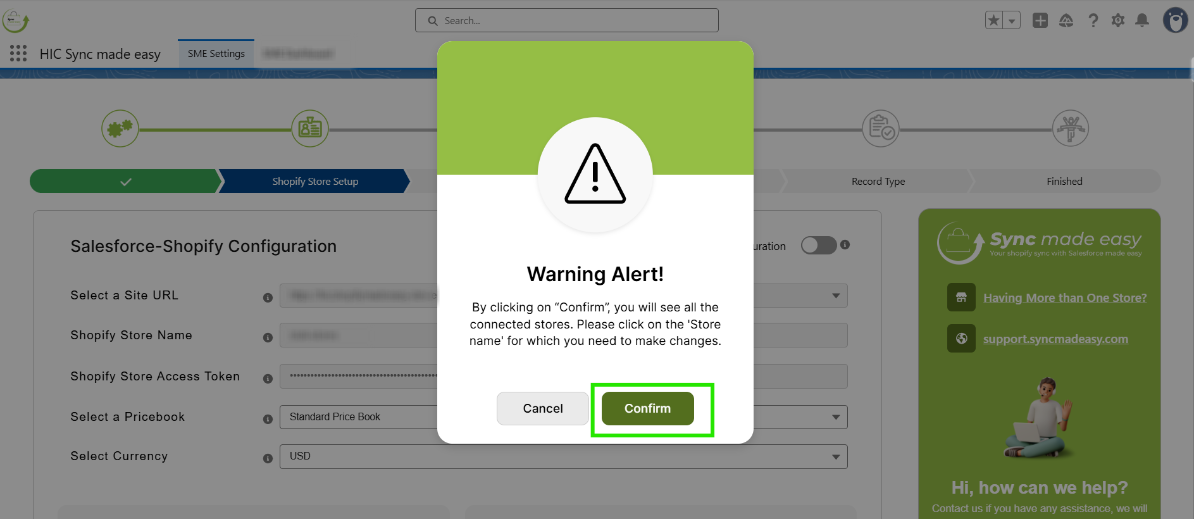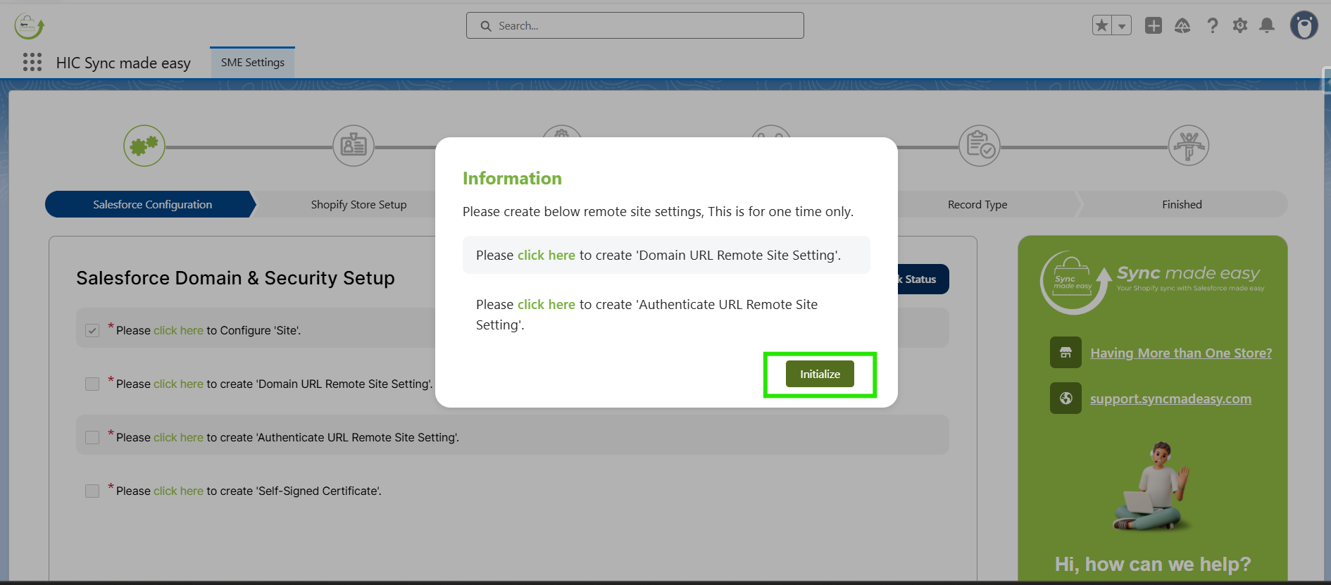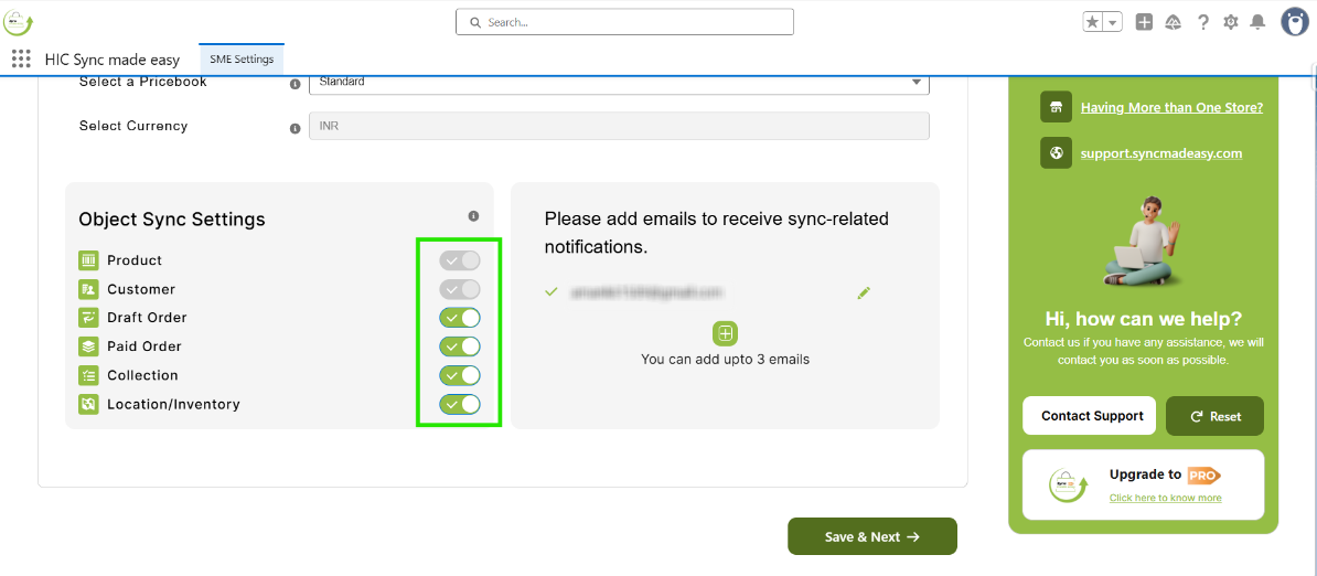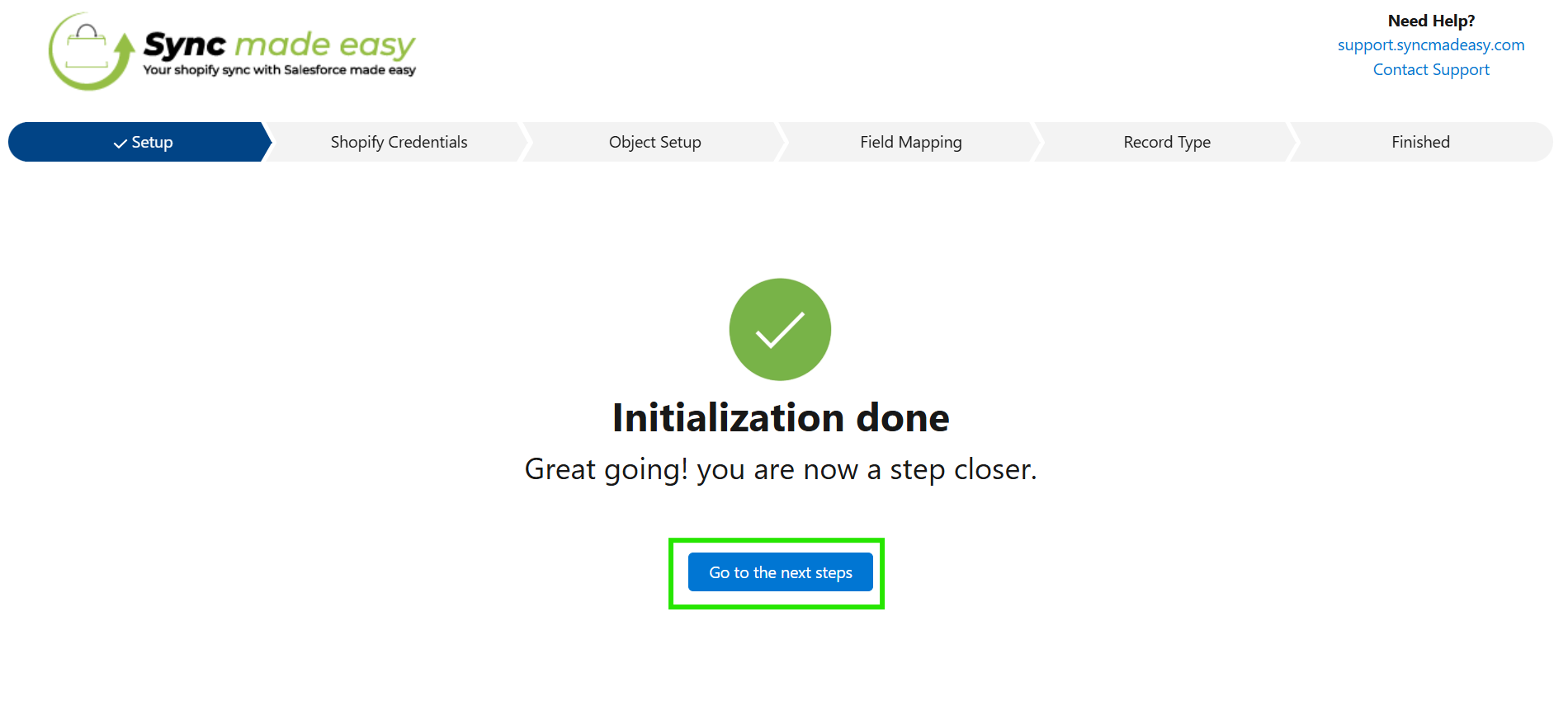 For further assistance or installation-related queries, click on Contact Support at the top right of each page to submit an issue, or reach out to us at support@syncmadeasy.com.
