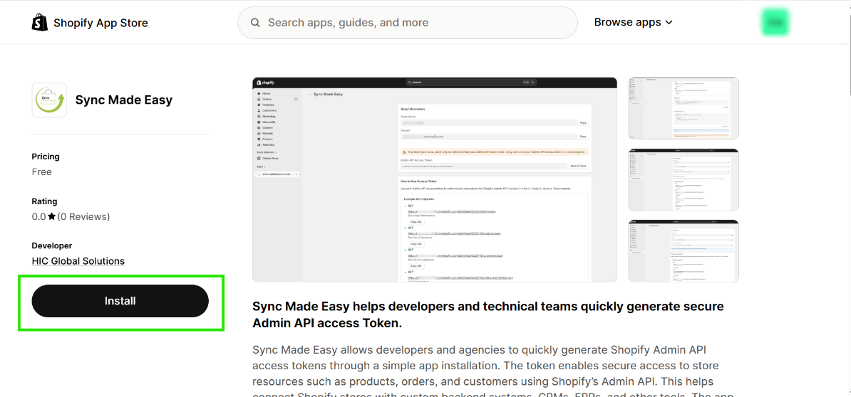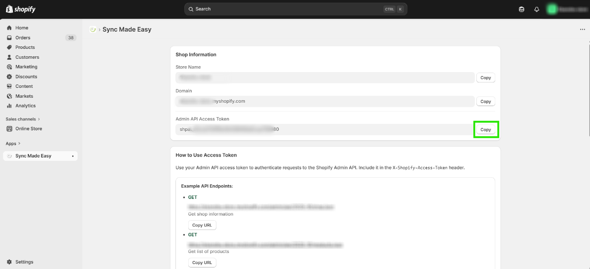 After installation, you will get your Shopify access token.