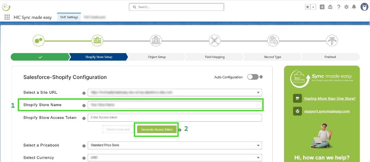 Now, back to the Shopify Store Setup page (step 2) and enter your Shopify Store Name and click on "Generate Access Token" button.