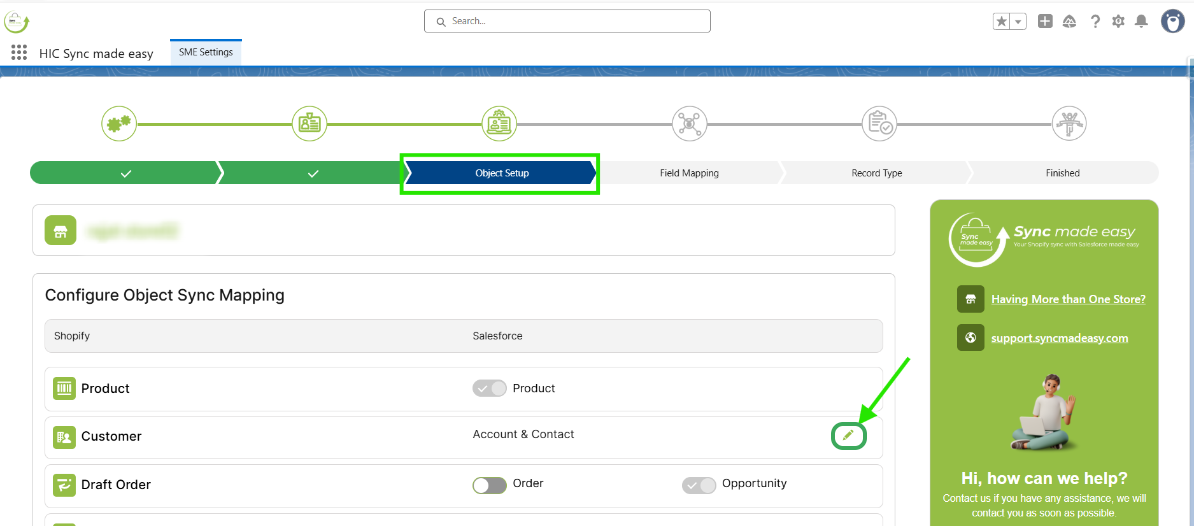 In this section, “Product” and “Customer” are default so you can’t change that, but if you want to disable the sync of other objects you can do that by turning off the toggle button .
