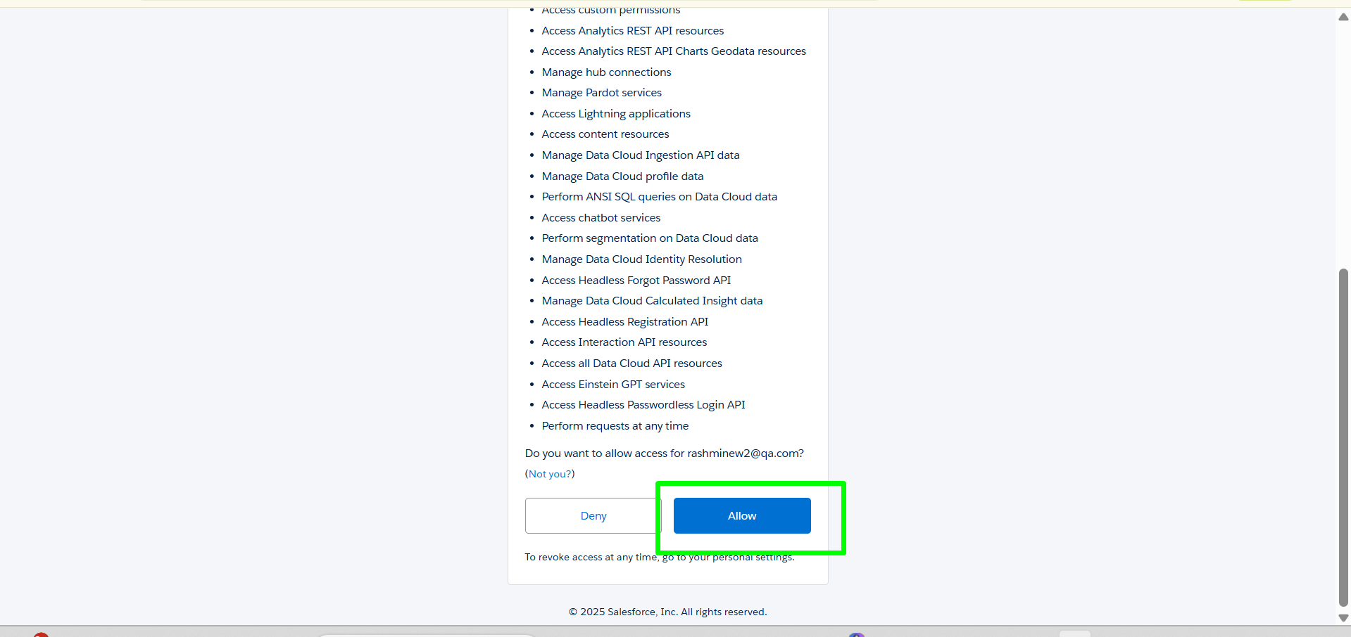 Now the Salesforce Authenticate page is open, scroll down and click on ‘Allow’ .