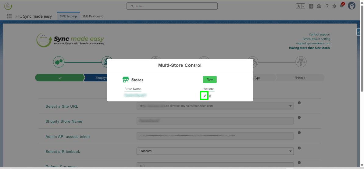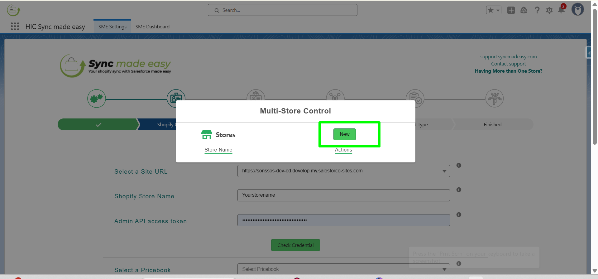 Step 3: To add a new store to your Salesforce org, click New from the multi-store control panel.