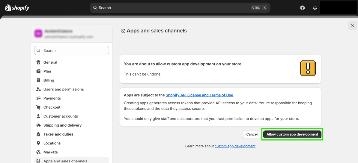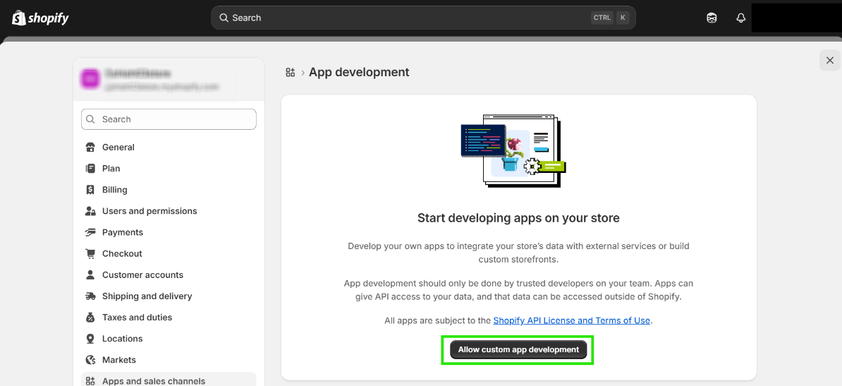 Step 5: Now, click on “Allow Custom app Development”.
