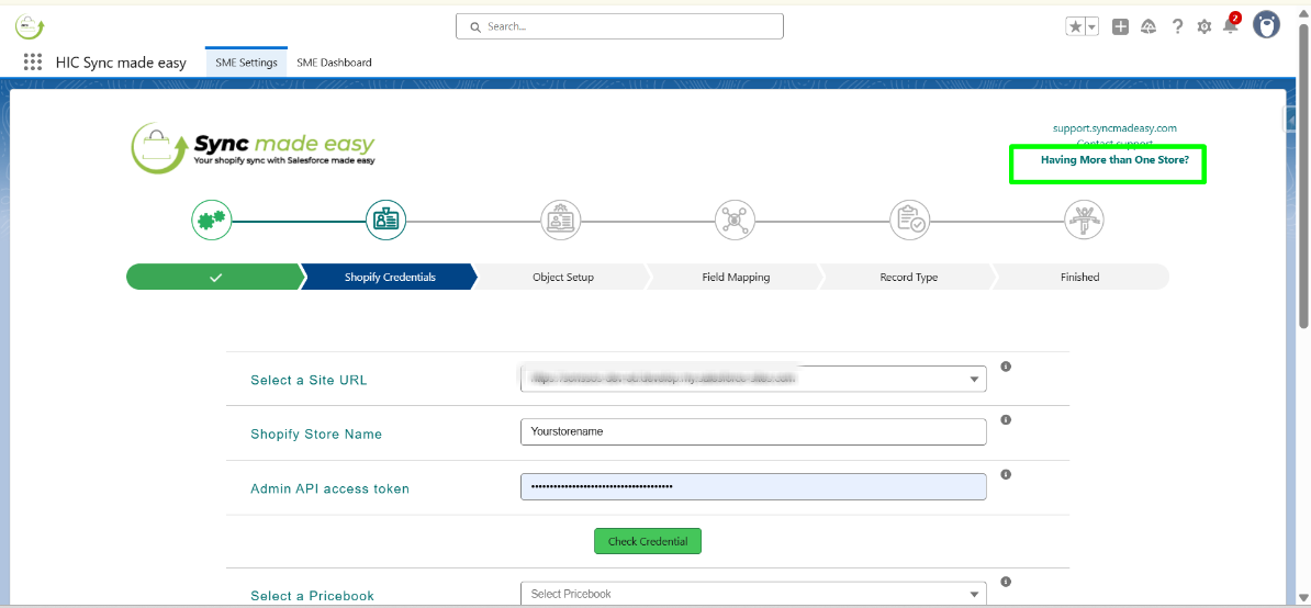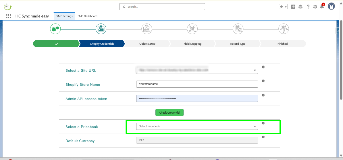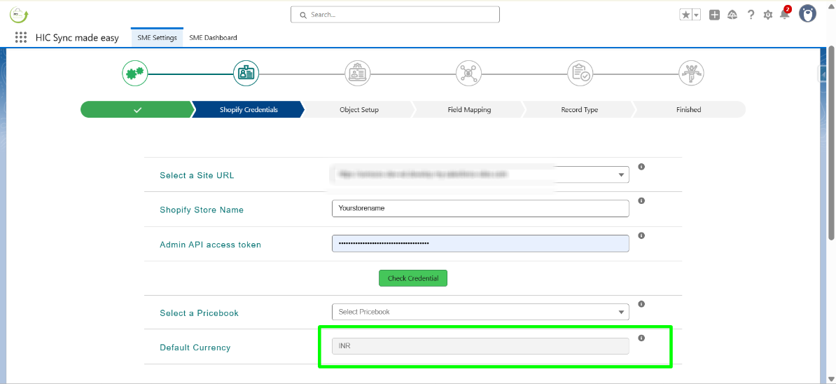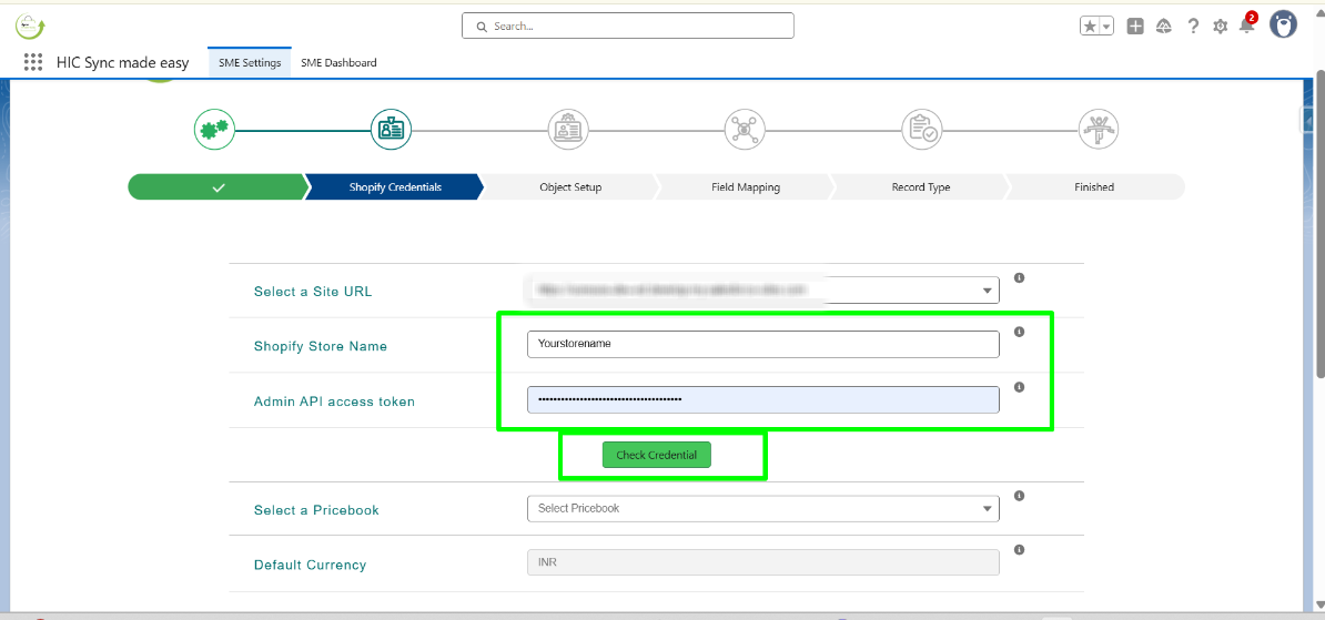 Step 16: Now, back to the Shopify Credentials page (step 2) and enter your Shopify Store Name and Shopify Access Token in the next field. Click on Check Credential.