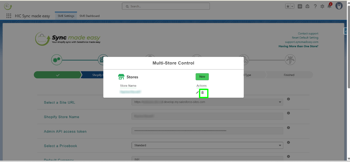 Step 9: Likewise, to delete a store, go to the multi-store control panel, select the store you want to delete, and click the trash icon next to it.