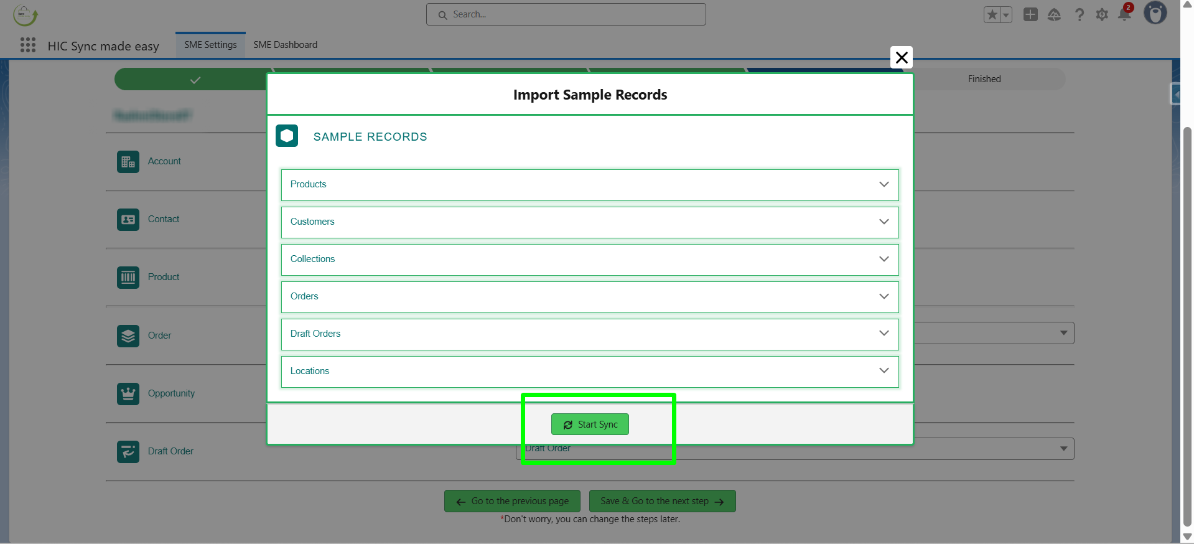 Now the Import Sample Records popup window is opened, click on “Start Sync”.