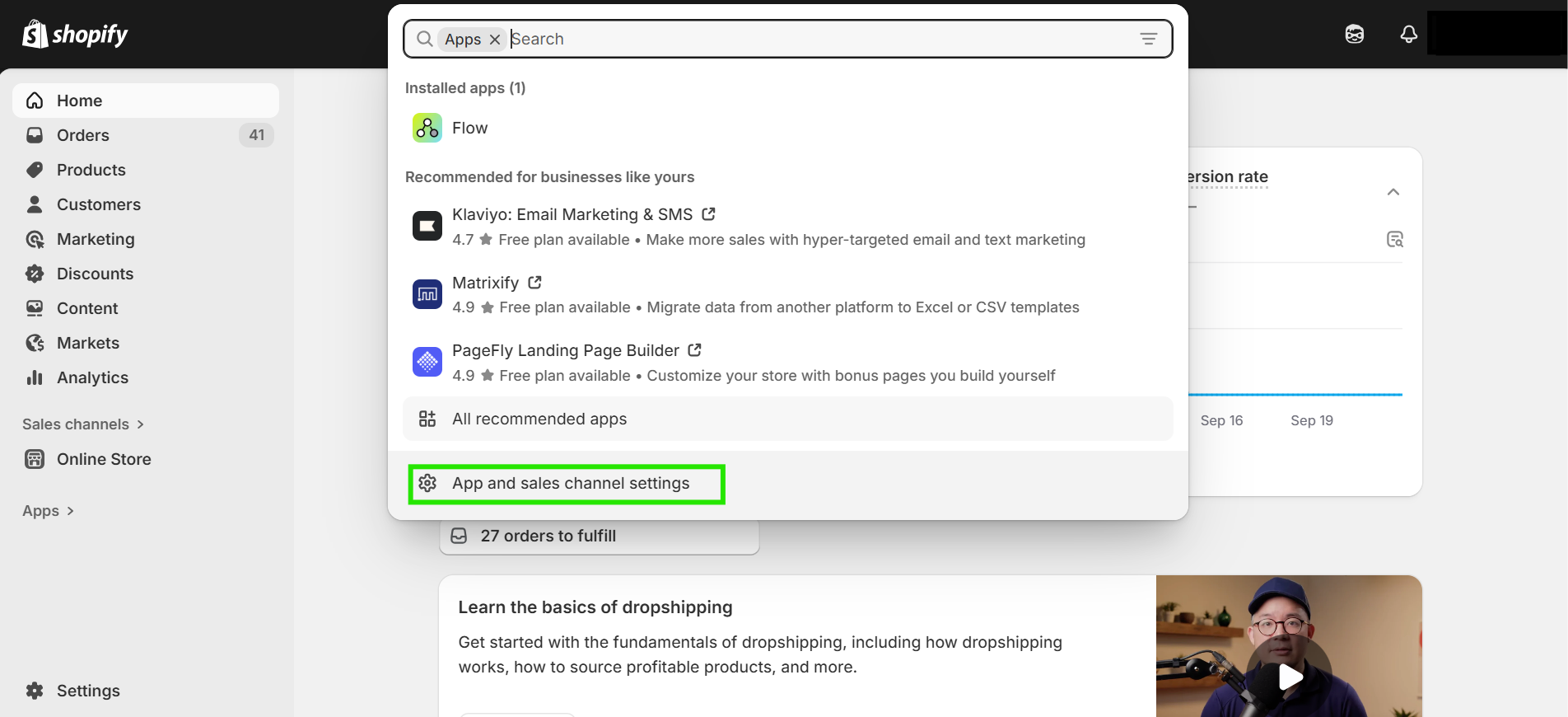Step 4: After opening the Apps and Sales channel settings, click on “Develop Apps".