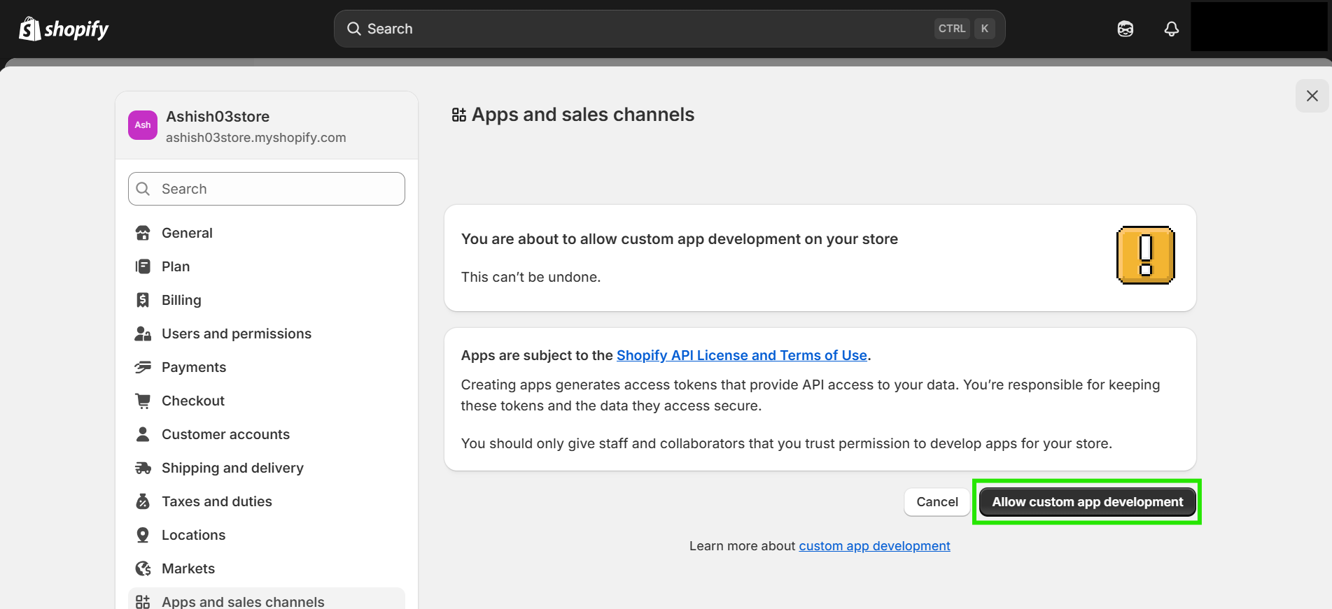 In this guide, we’ll walk you through the step-by-step process of generating an Admin API Access Token in your Shopify store. Follow the instructions below to obtain your access token and ensure a smooth setup for your integration.