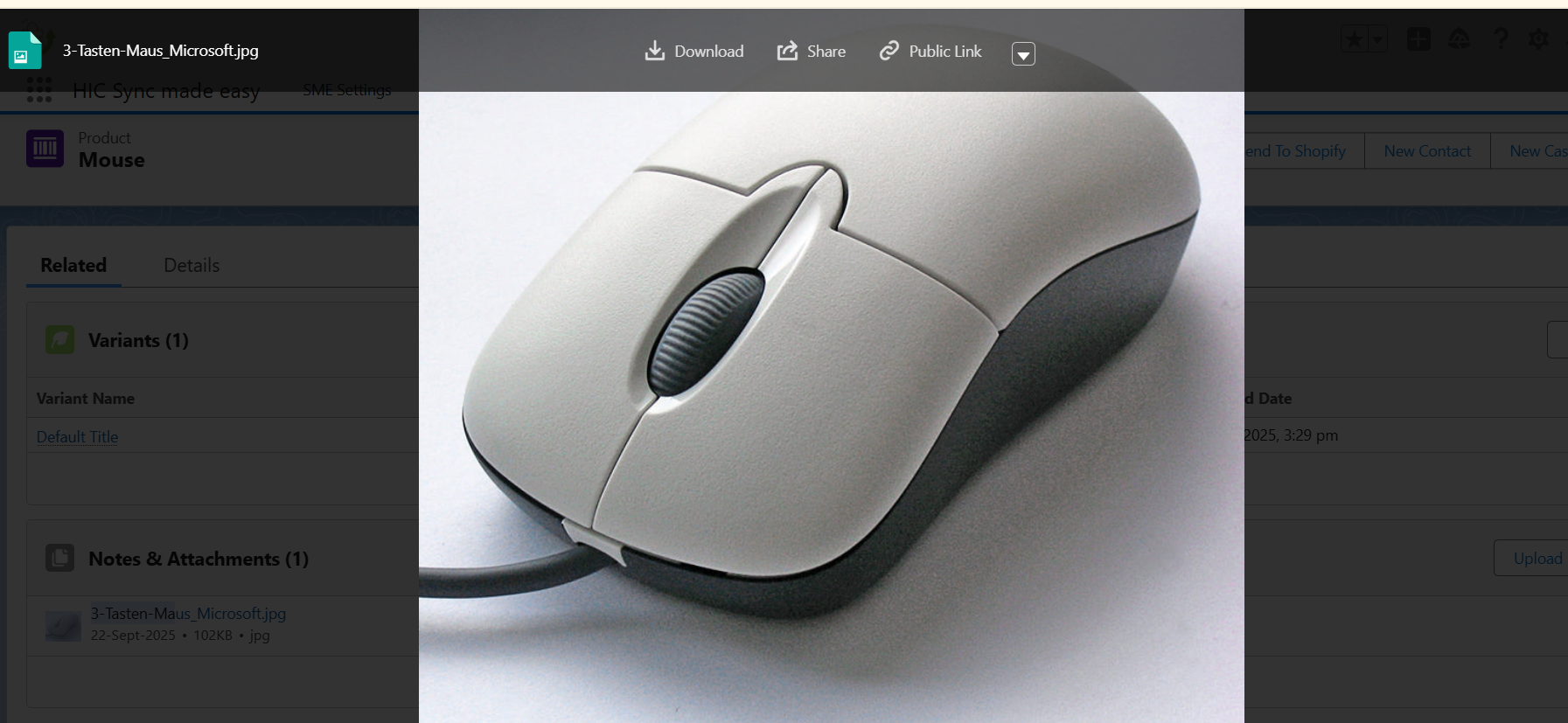 In this guide, we will walk you through the process of syncing Shopify product images to Salesforce. When a product is created or already exists in Shopify with an image, it automatically syncs to Salesforce, and the image is stored under the Notes & Attachments section. Follow these steps to enable and use this feature seamlessly: