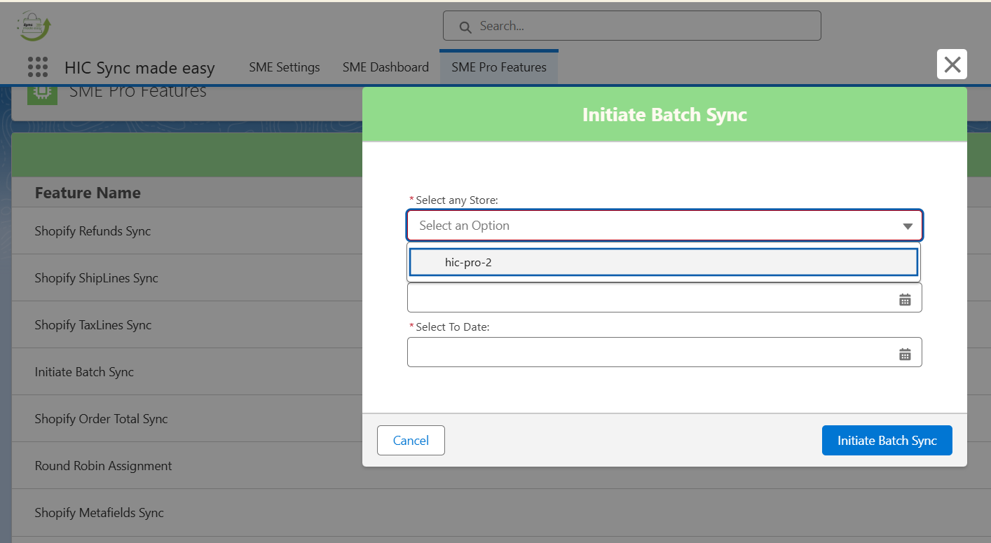The Initiate Batch Sync feature allows you to sync specific Shopify data within a defined time range instead of pulling all historical records. This helps you keep the sync process more efficient, accurate, and organized.