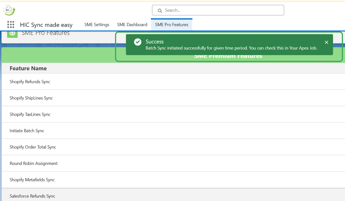 “Batch Sync Initiated for the given time period. You can check this in your Apex Job.”