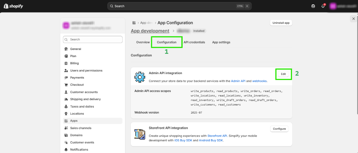 Step 6: Now, Click on configuration and edit the “Admin API Integration”