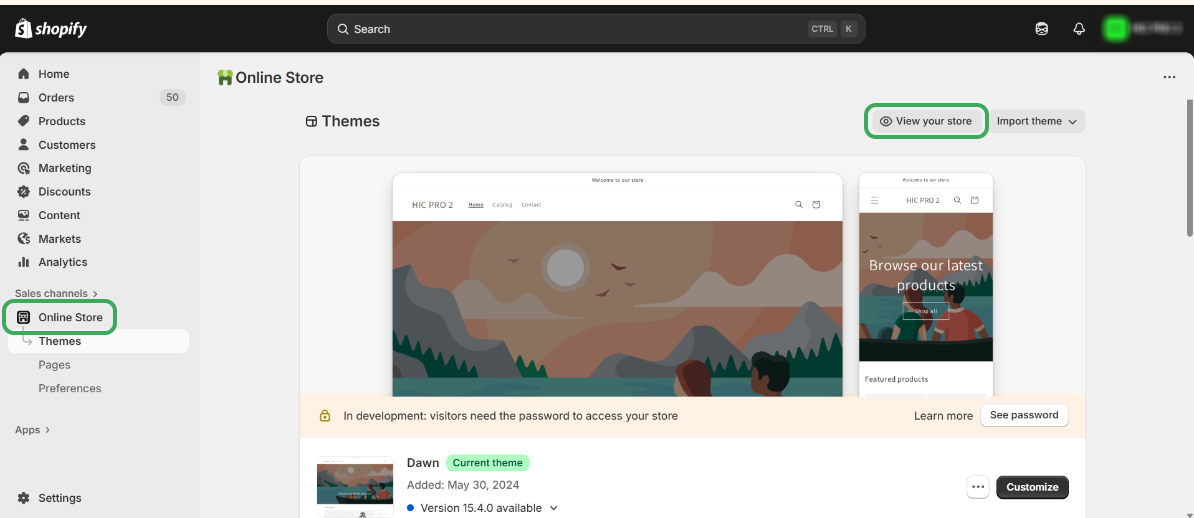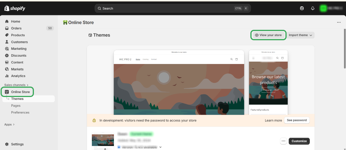 Step 4: In your Shopify store, navigate to Online Store and select View Your Store.