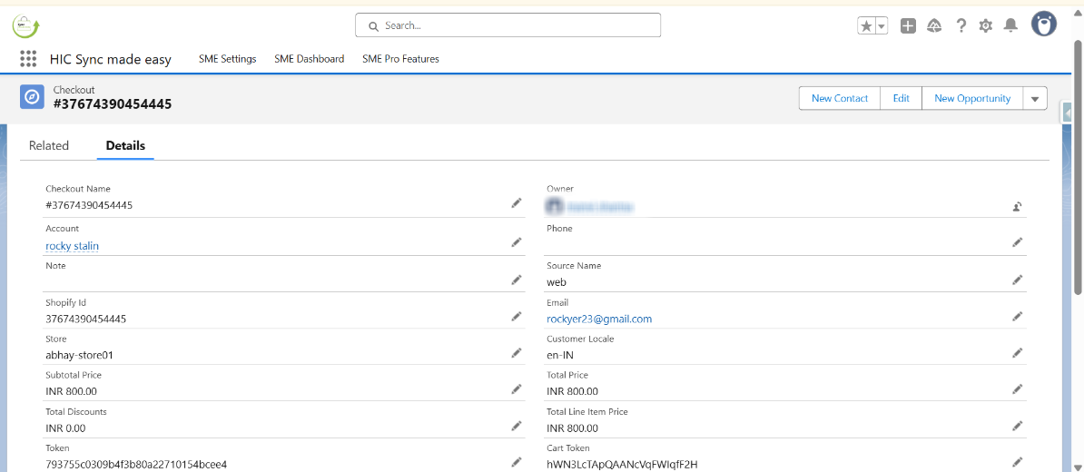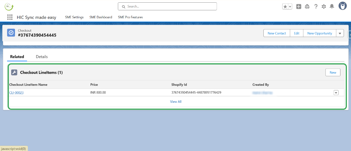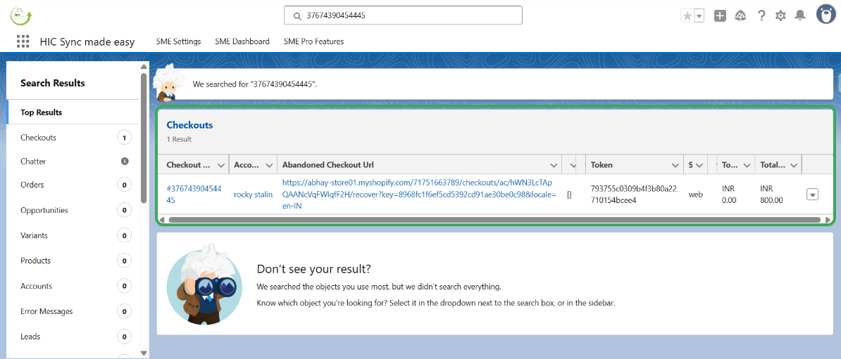 Step 9: In Salesforce, use the “Shopify ID” to locate the corresponding Checkout record.