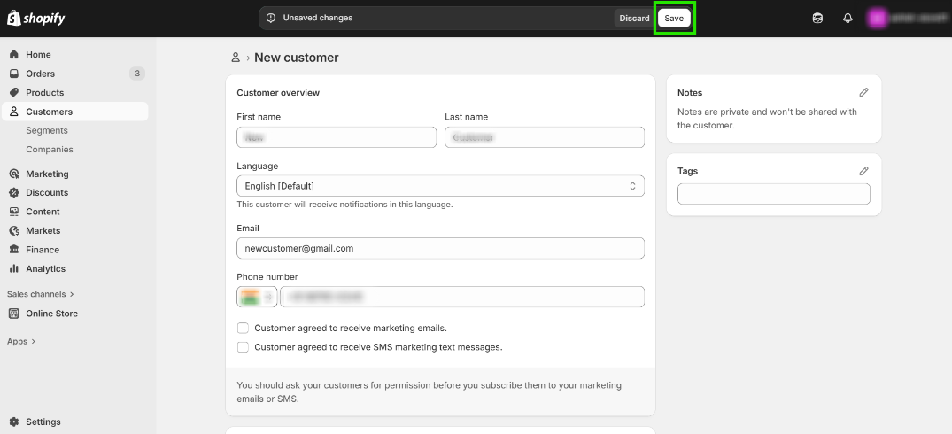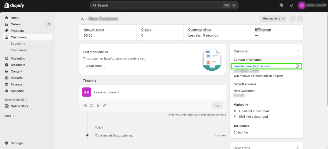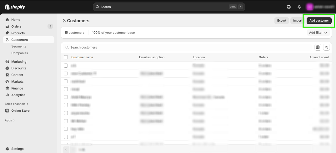 Step 3: Go to your Shopify Store and Create a new Customer by clicking on “Add Customer”.