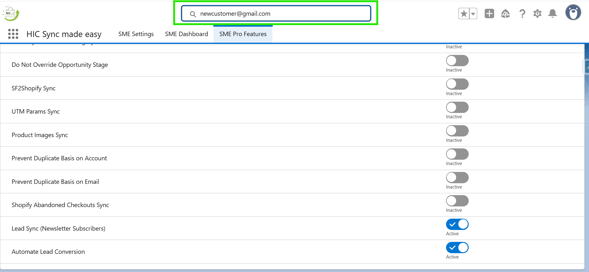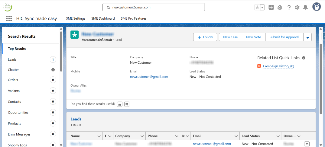 Step 6: Open your Salesforce Org and search for the copied Shopify Email ID on the "Search box".