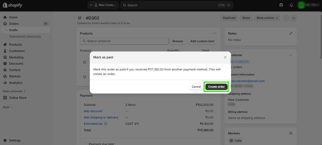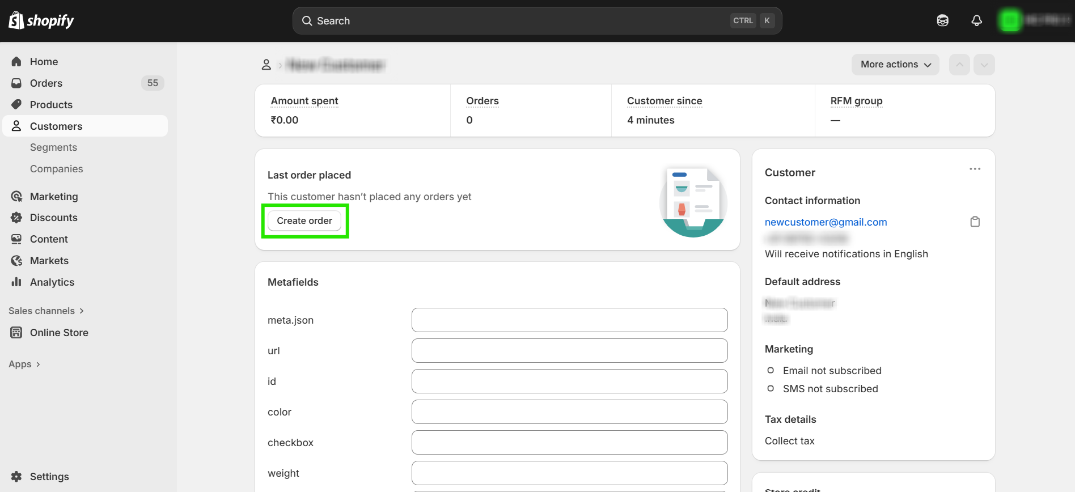 Step 8: Again, go back to Shopify and place a new order by the same customer.