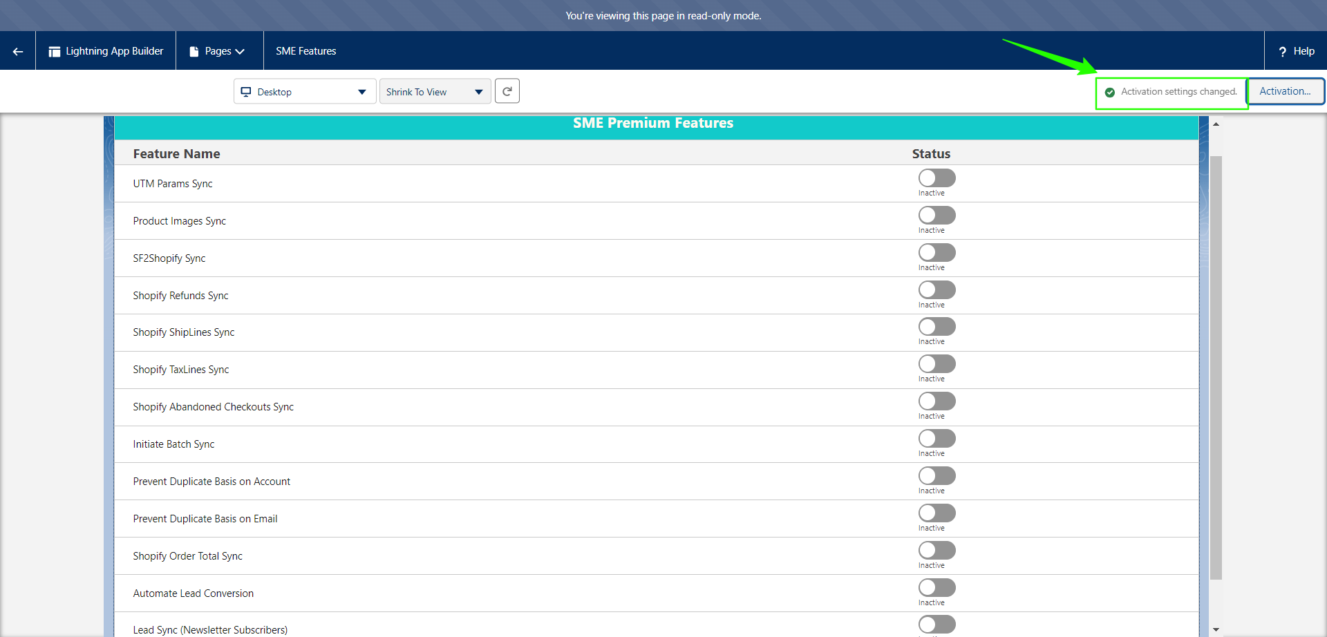 - Salesforce to Shopify Sync – Send newly created Salesforce accounts, contacts, opportunities, orders, products/variants, or updated products/variants to Shopify via the Send to Shopify button. The toggle button enables the user with a popup guide that helps to navigate documents explaining to add the “Send to Shopify” button.
