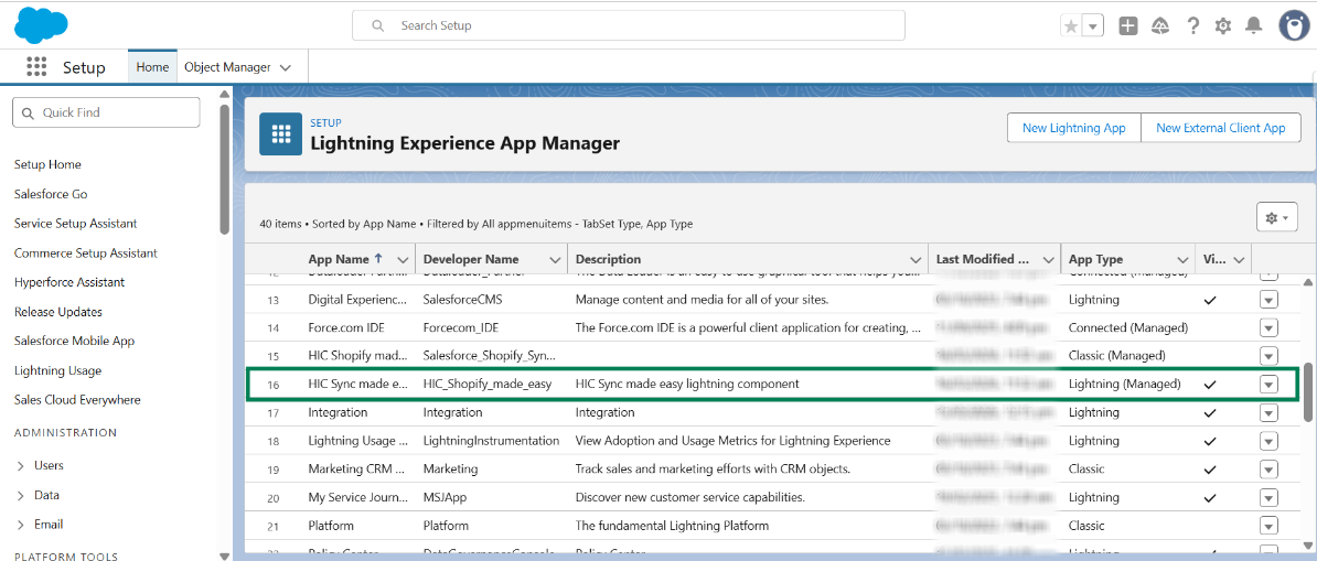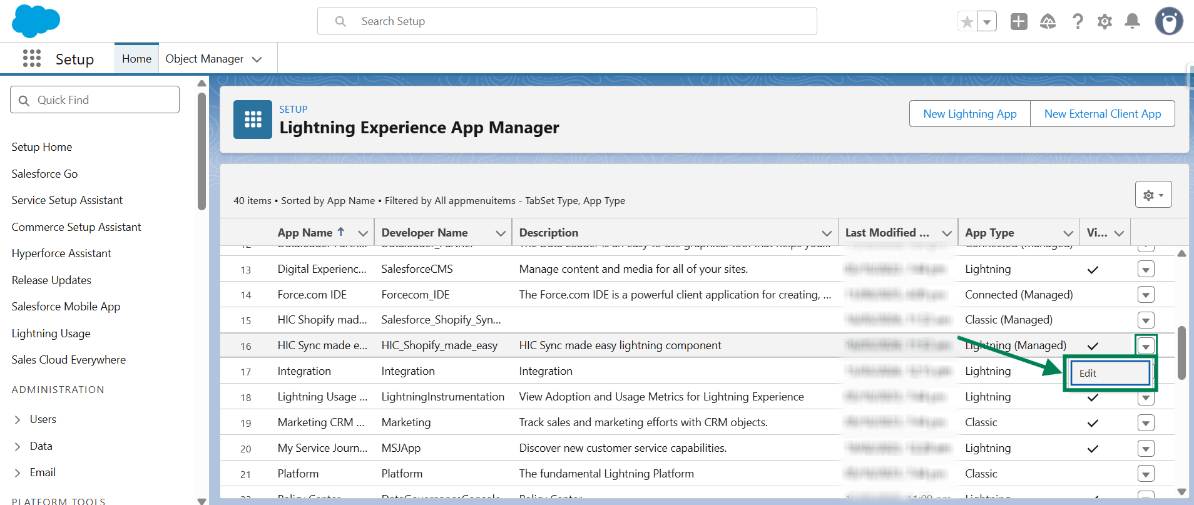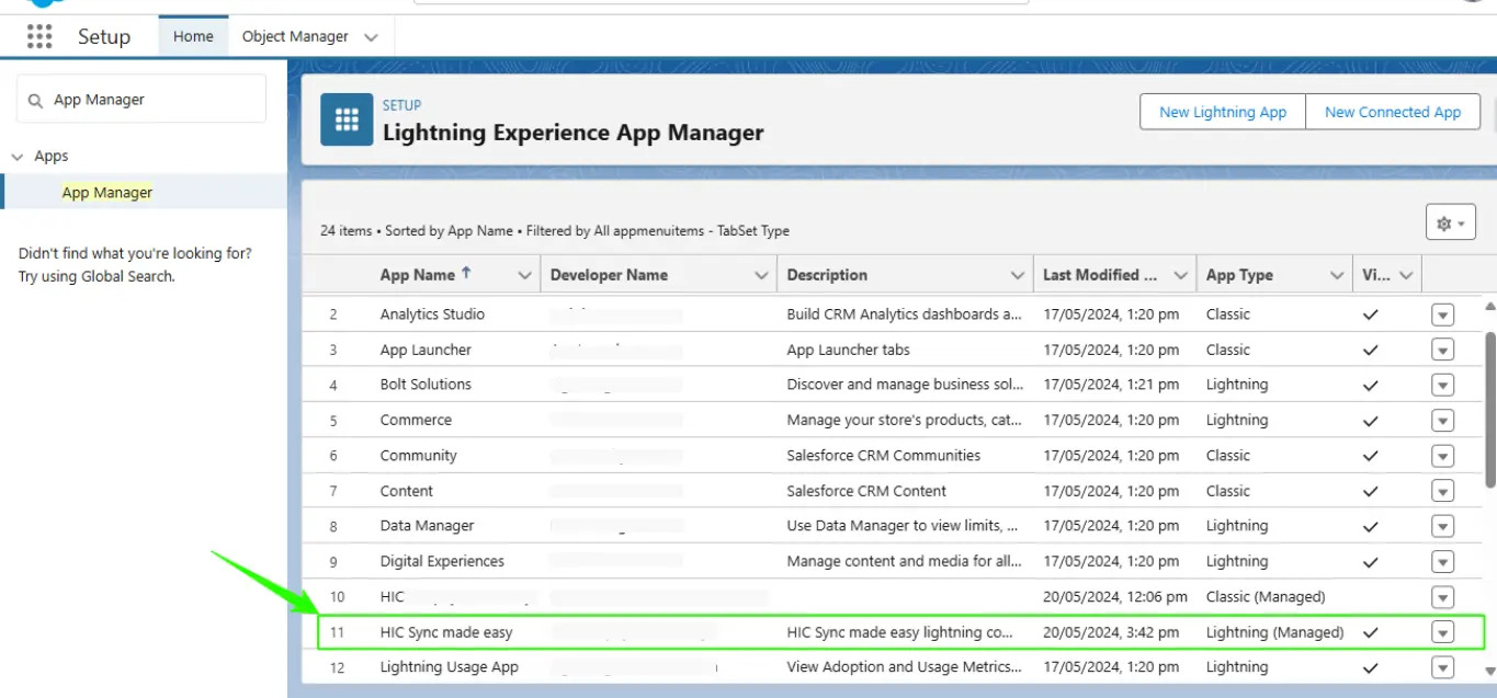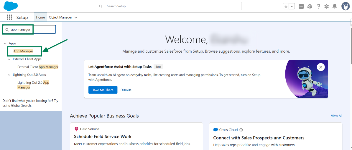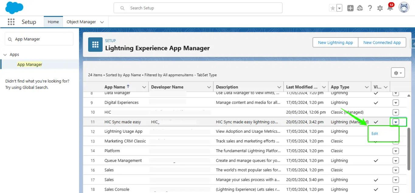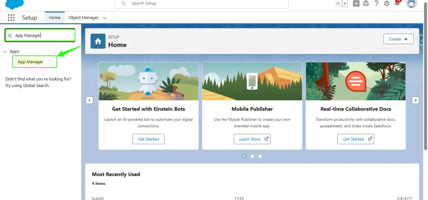 2. Go to Setup and Search “App Manager” in the Quick Find box.