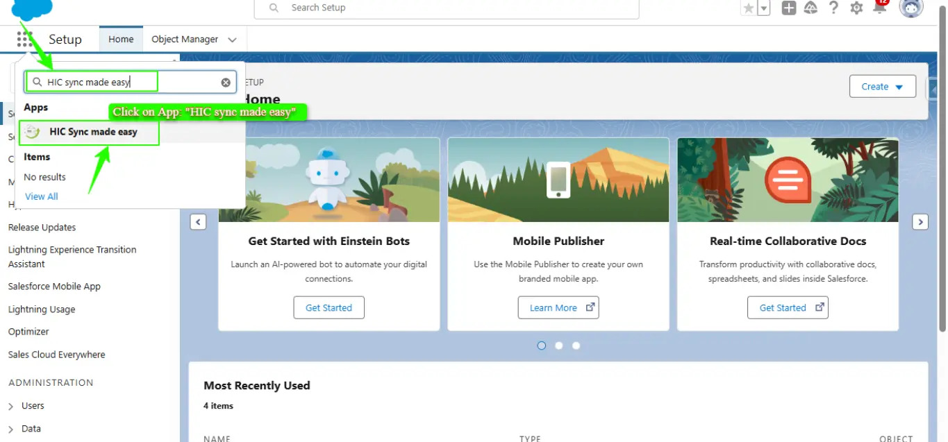 9. Now Go to “App Launcher” (9 Dots) and Search for App: ”HIC Sync Made Easy” and “Click” on it as below.