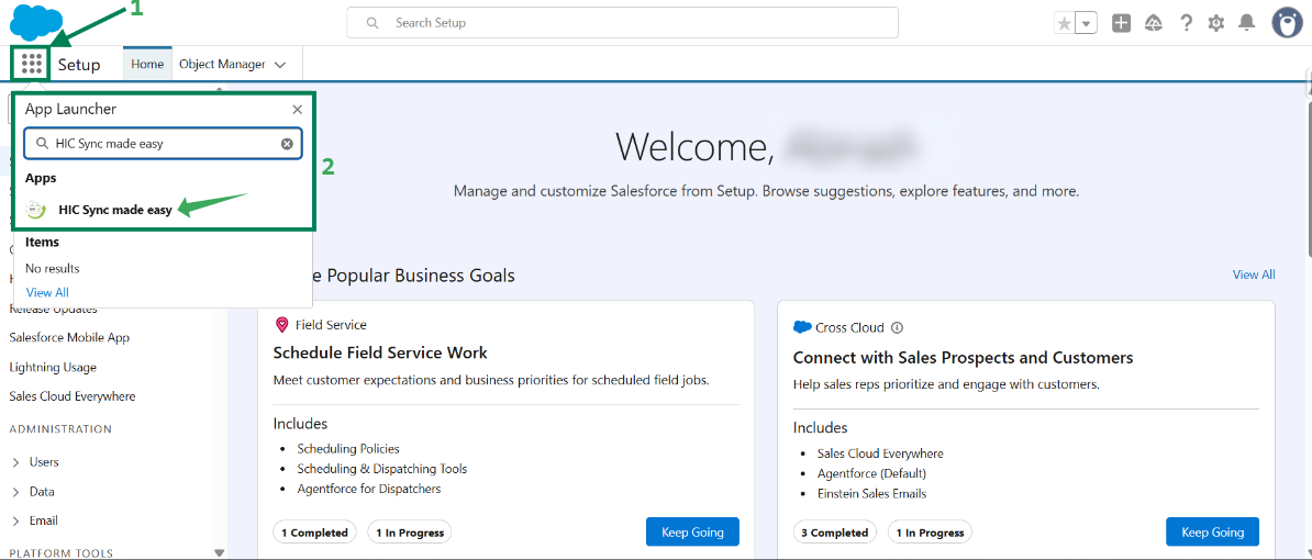 9. Now go to “App Launcher” (9 Dots) and search for App: ”HIC Sync Made Easy” and “Click” on it as below.