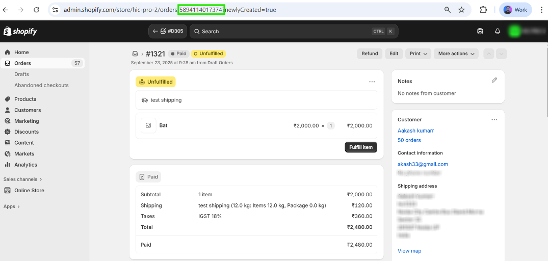 Step 8: Copy the “Shopify ID” of the order.
