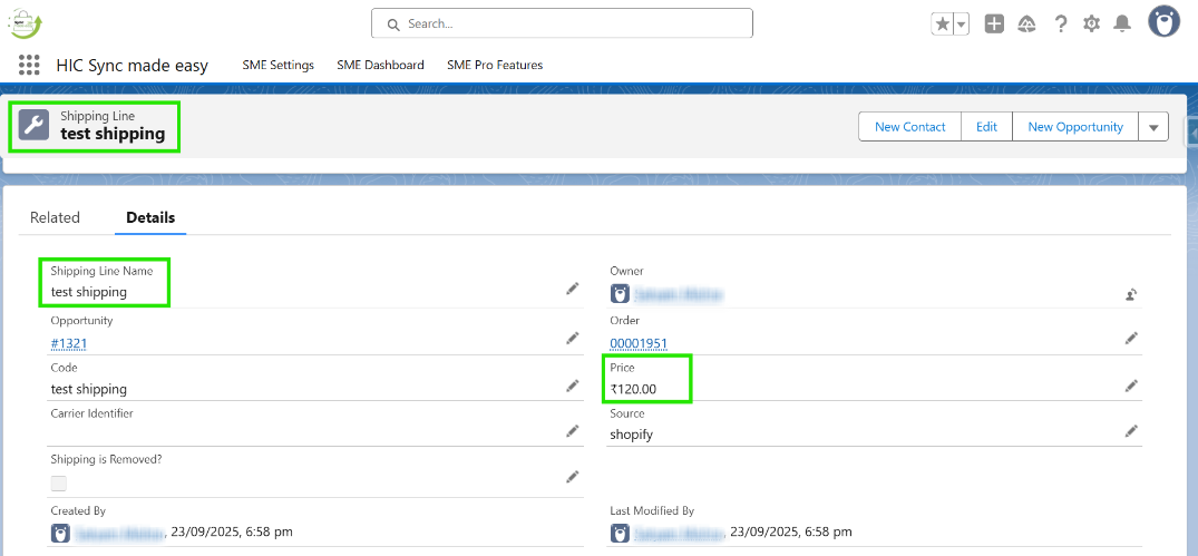 When an order is created in Shopify with a shipping amount, Salesforce automatically generates a corresponding shipping line in the order record, keeping your data accurate and organized.