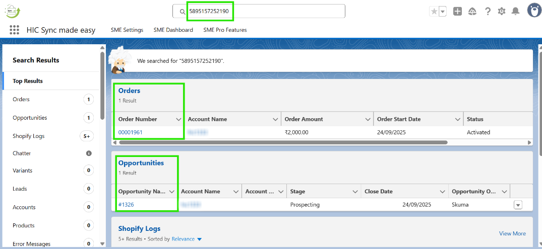 Step 8: In Salesforce, search for the order using the Shopify ID.