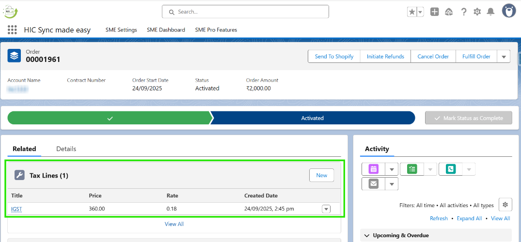 In this guide, we’ll walk you through how Order Tax Lines sync seamlessly from Shopify to Salesforce. When an order with tax is created in Shopify, Salesforce automatically generates related tax line records, ensuring accurate financial data in your CRM.