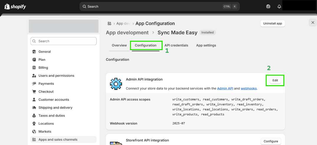 Step 6: Now, click on "configuration" and edit the “Admin API Integration”.