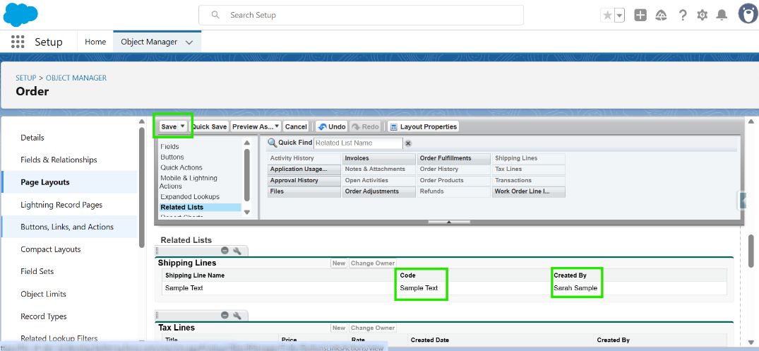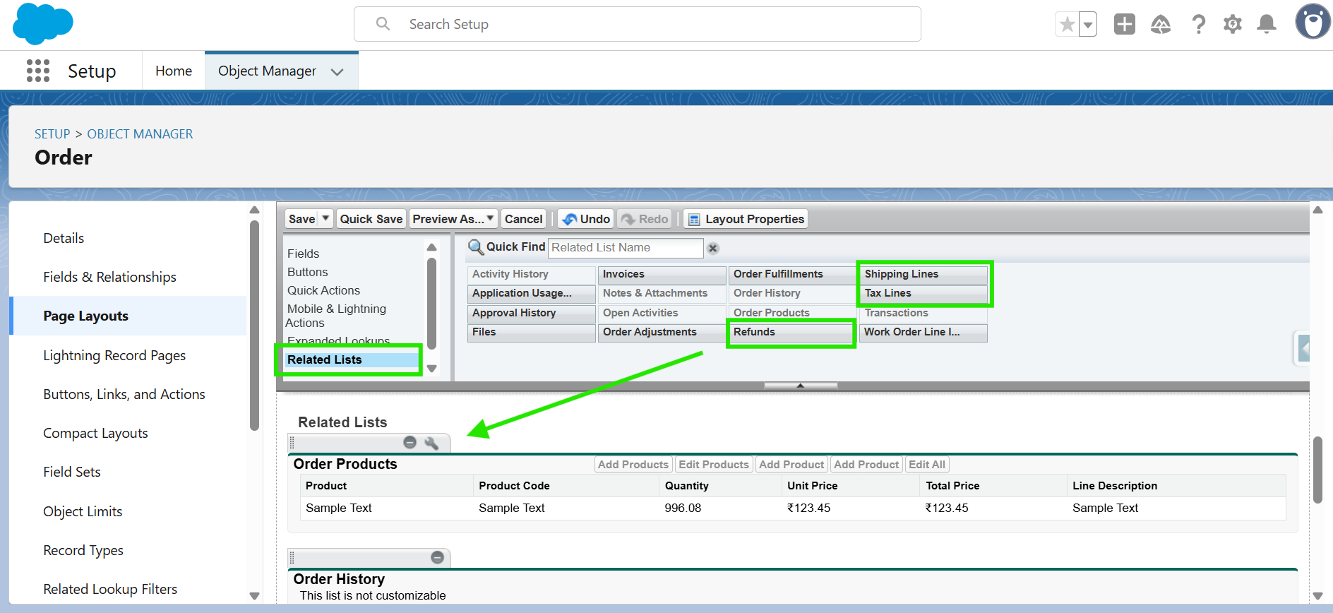 Step 5 – Click on Related Lists and add “Shipping Lines”, “Tax Lines” and “Refund” as shown in the screenshot below.