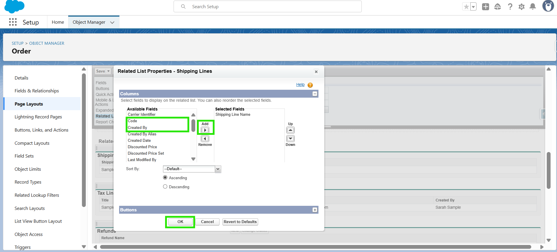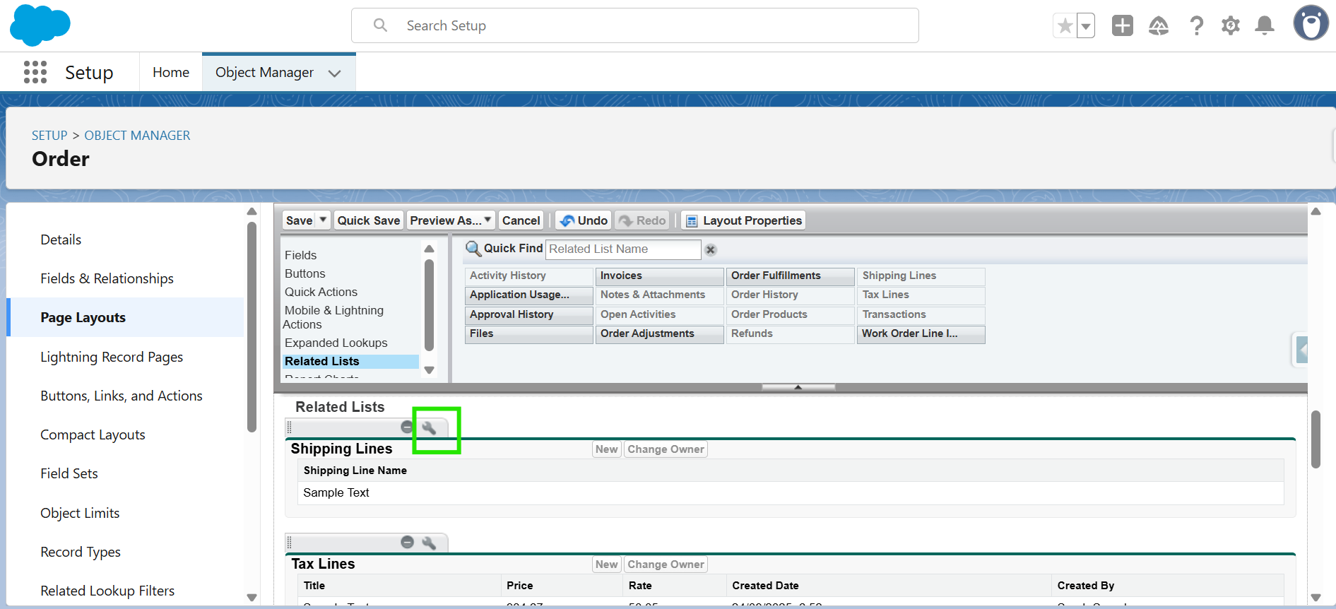 Note: Ensure you have enabled the Shipping, Tax, and Refund Lines for both Order and Opportunity.