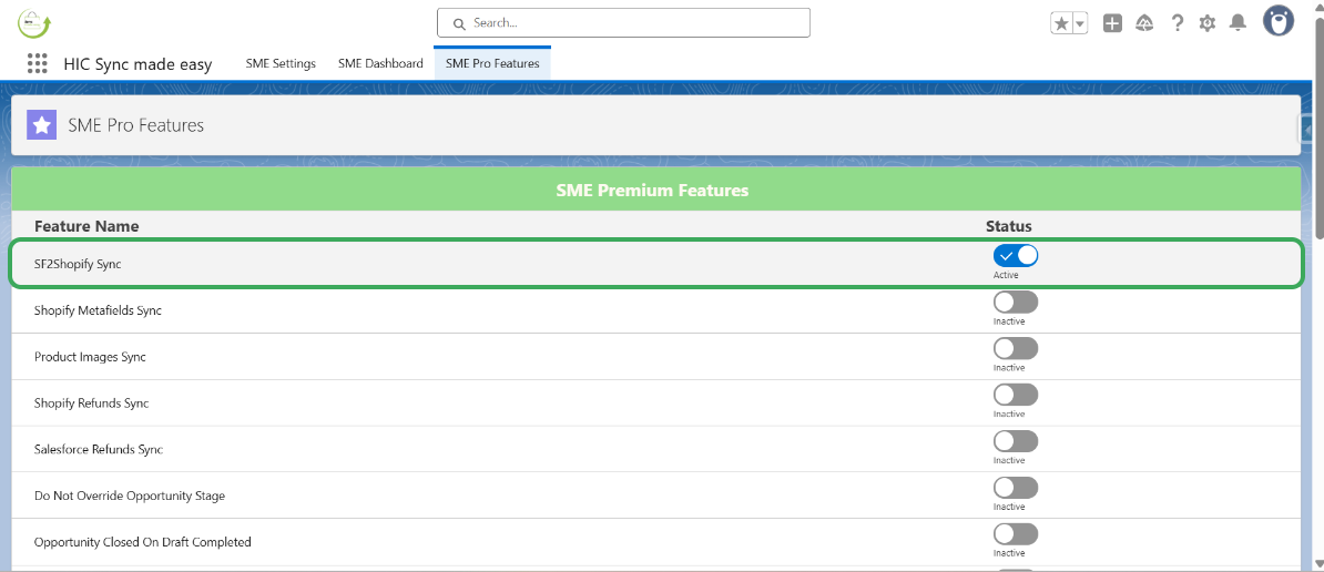 Step 3: Enable the “SF2 Shopify Sync” feature and confirm by clicking OK, I Understand.
