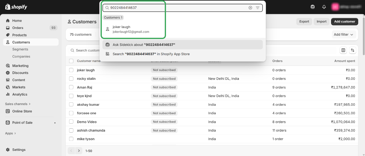 Step 5: Copy the “Shopify ID” and search for it in your Shopify store.