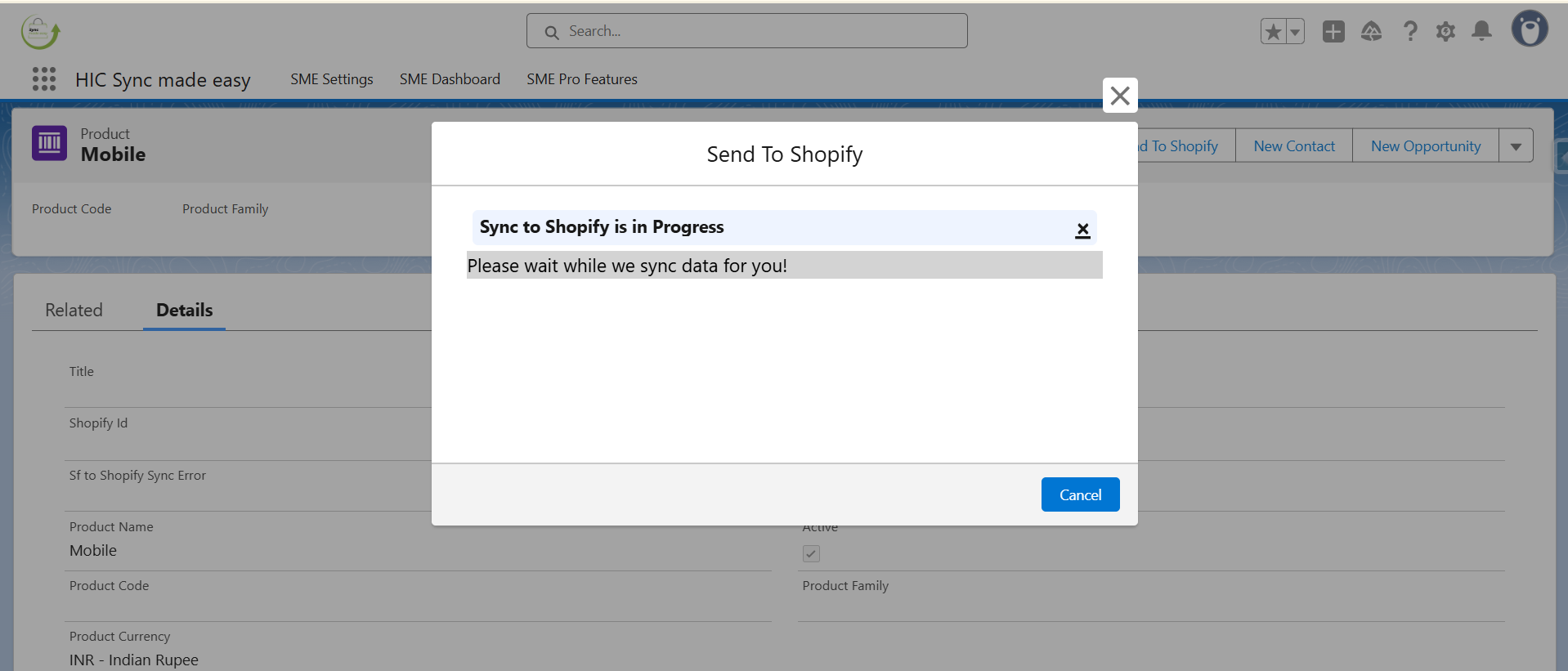 The Send to Shopify button is an exclusive feature of Sync Made Easy Pro, providing enhanced integration capabilities across these objects for a smoother workflow.