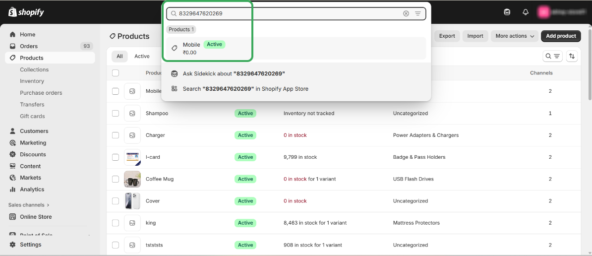 Step 11: Copy the Shopify ID and search for it in your Shopify store.