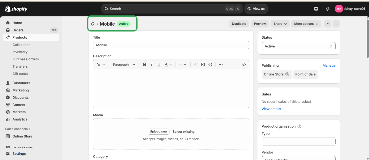 Step 8: Observe that the “Shopify ID” and “Store Name” fields are blank. Click on the “Send to Shopify” button to generate the Shopify ID and Store Name.